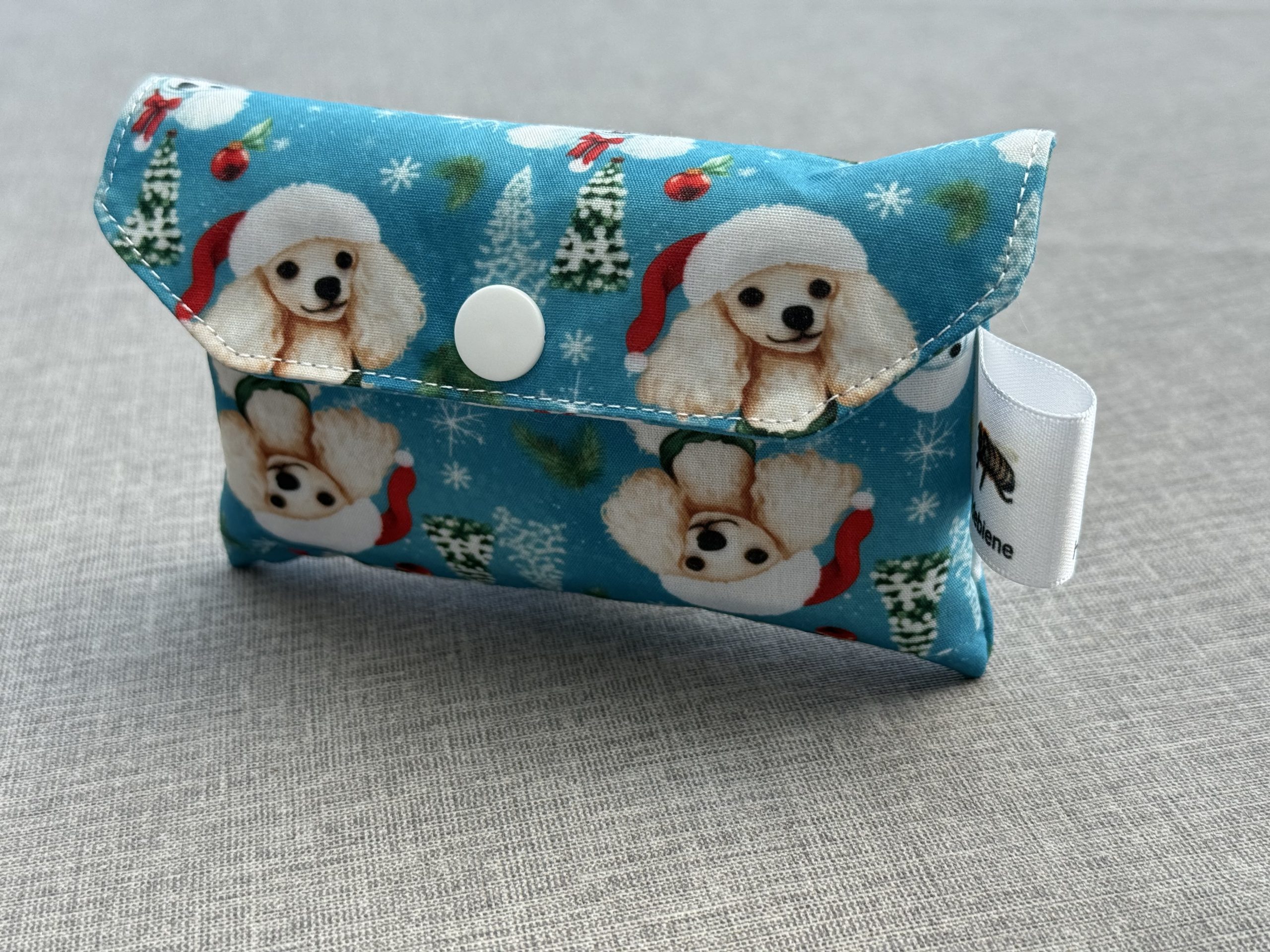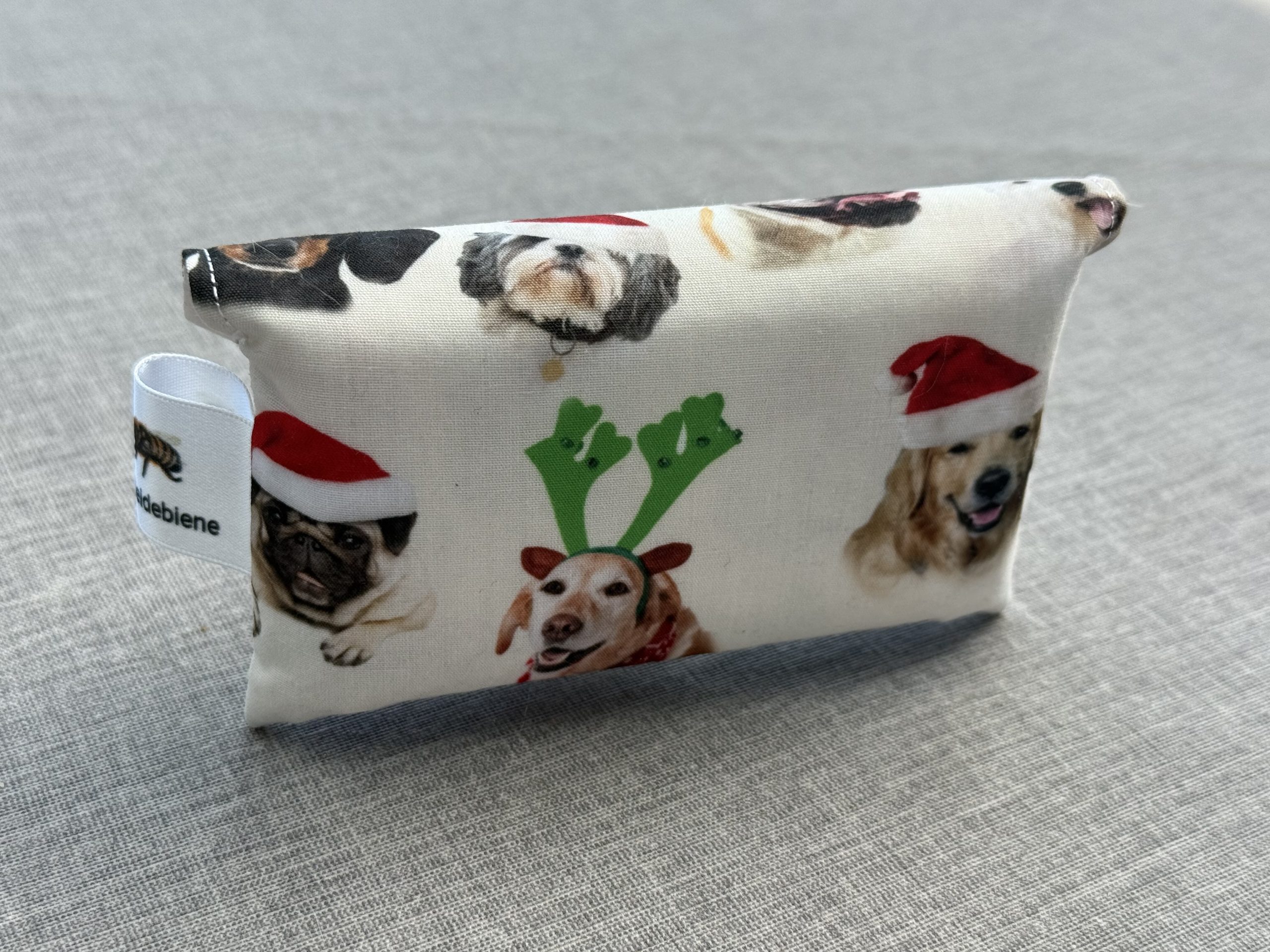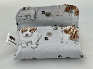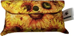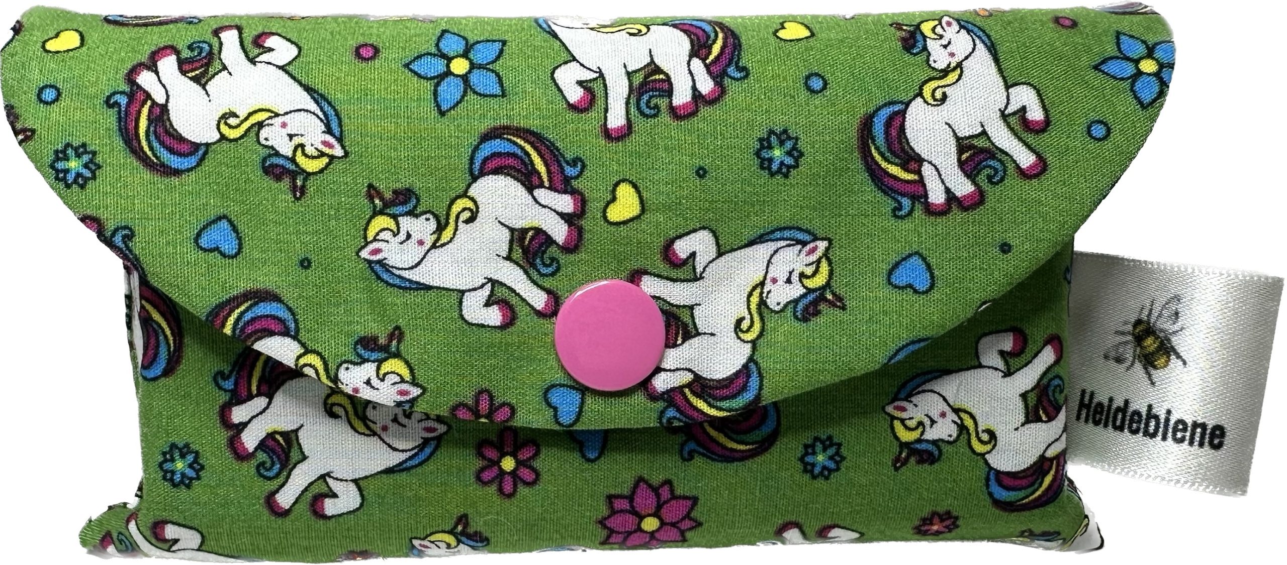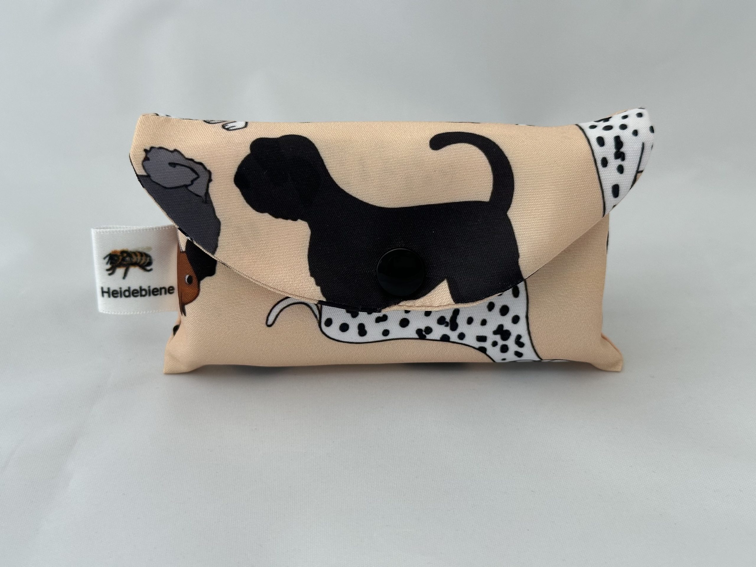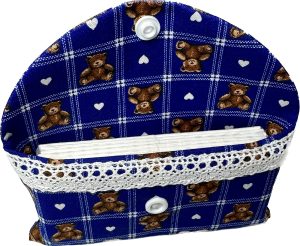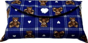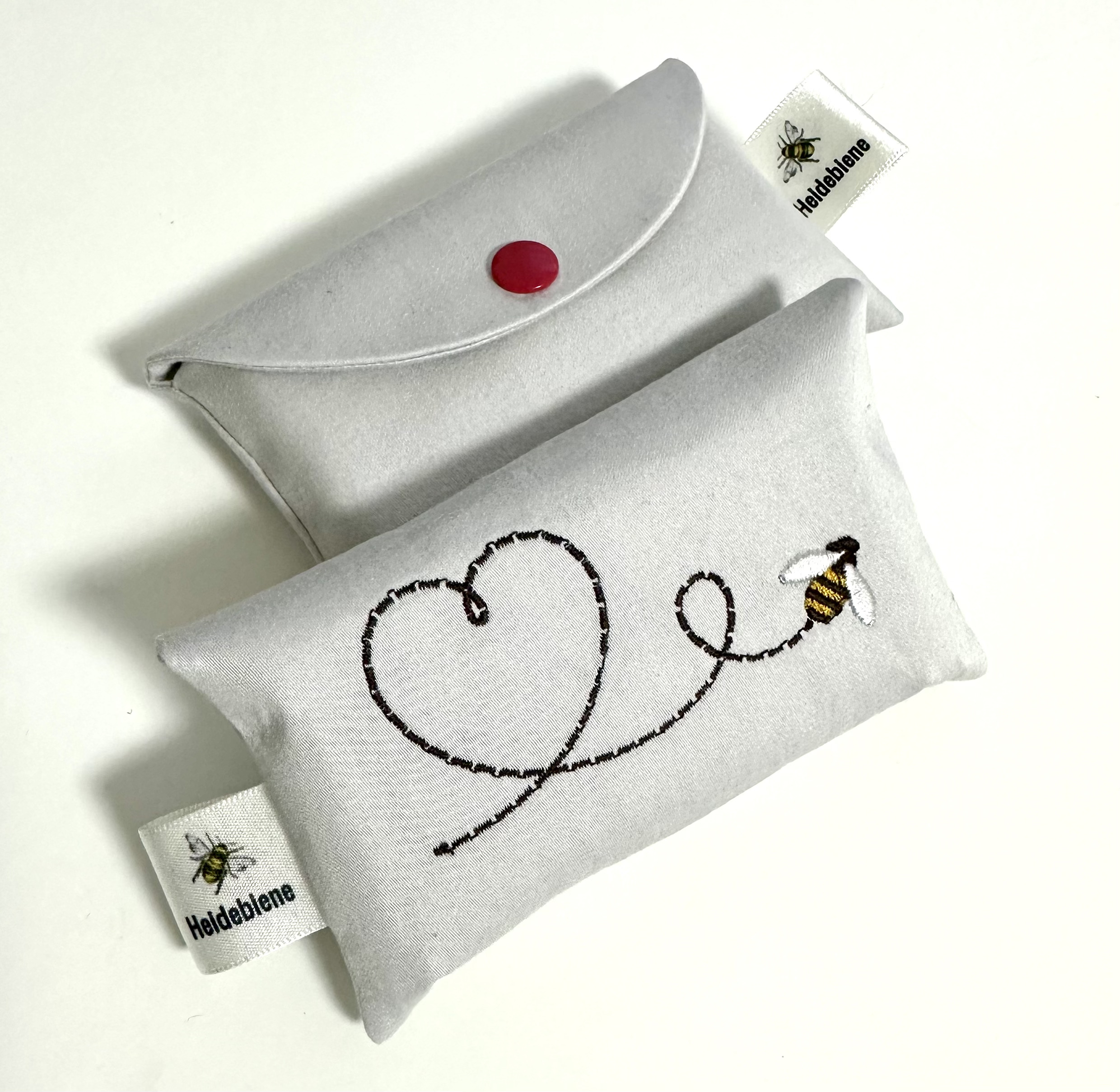 Praktische kleine Tasche/Hülle ideal für Papiertaschentücher. In jedes Modell passt ein ganzes Päckchen Taschentücher. Verschiedene Ausführungen möglich mit Klappverschluss, Druckknopf oder Verschluss mit einer Lasche. Leichte Entnahme eines einzelnen Taschentuches, immer sauber griffbereit aufbewahrt bis zum letzten Taschentuch und hübsch anzusehen. Eine kleine persönliche Stickerei ist bei einigen Modellen möglich, wie die Beispiele zeigen. Die Tasche ist auch geeignet für Hygieneartikel für unterwegs, eine 50g Tafel Schokolade, Ladekabel oder Hundeleckerli u.v.m.  Ein ideales kleines Geschenk als Mitbringsel oder Dankeschön. Weitere Ideen findest du unter Schnäppchen.